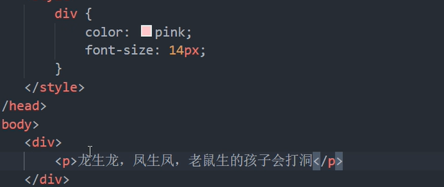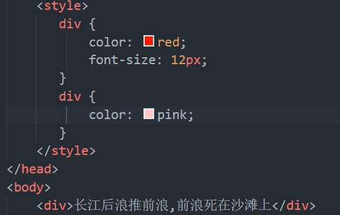 就近原则就是粉色,因为粉色那个div没有定义字体大小,所以用到了红色你那个大小
