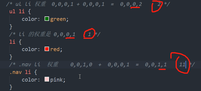 ol li{后代选择器}