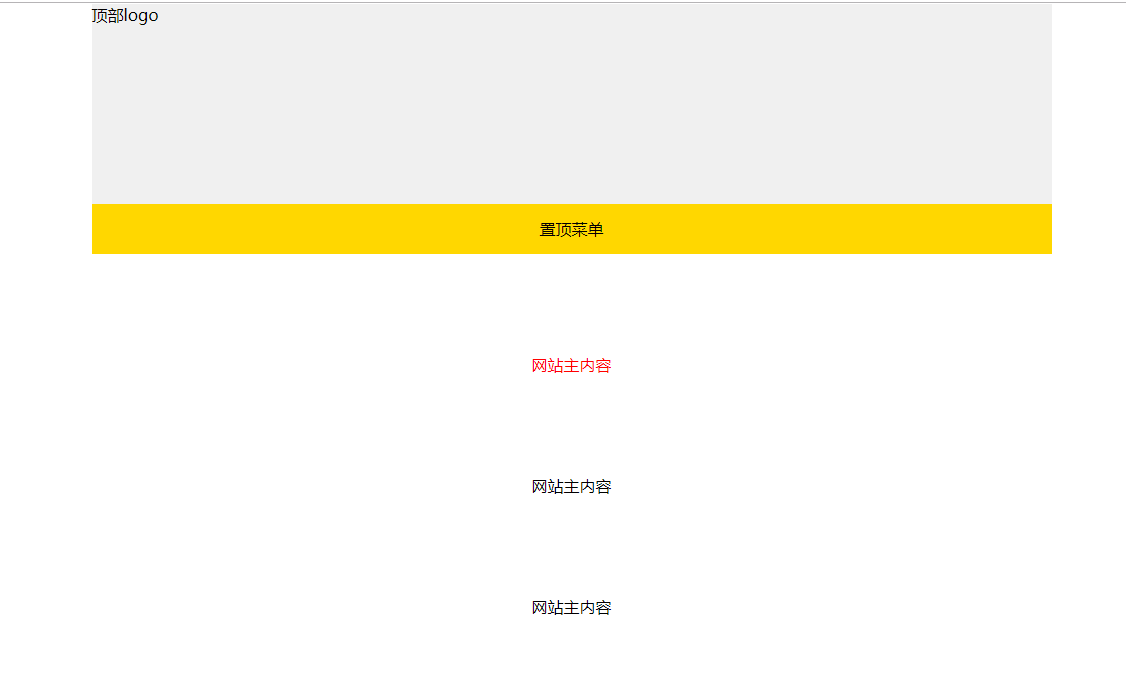 1 <!DOCTYPE html> 2 <html lang="en"> 3 <head> 4 <meta charset="UTF-8"> 5 <title>置顶菜单</title> 6 7 <script type="text/javascript" src="../js/jquery-1.12.4.min.js"></script> 8 <script type="text/javascript"> 9 $(function(){ 10 $(window).scroll(function(){ //页面滚动事件 11 var nowtop=$(document).scrollTop(); //获取页面向上滚动距离 12 //console.log(nowtop); 13 14 if(nowtop>200){ 15 $('.menu').css({ 16 position:'fixed', 17 top:0, 18 left:'50%', //和下面的marginLeft结合使用,使.menu居中 19 marginLeft:-480, 20 }); 21 $('.menu_pos').show() //和下面的$('.menu_pos').hide()结合使用,当nowtop>200时,menu_pos和menu有重合,消除滑动滚动条时menu_pos卡顿效果(造成卡顿的原因是fix定位脱离了文档流导致) 22 } 23 else{ 24 $('.menu').css({ 25 position:'static', //static 默认值,没有定位,元素出现在正常的文档流中,相当于取消定位属性或者不设置定位属性 26 marginLeft:'auto' //这里需要有marginLeft,为了覆盖上面的marginLeft:-480 27 }); 28 $('.menu_pos').hide() 29 } 30 31 32 //控制图标渐入渐出 33 if(nowtop>400){ 34 $('.totop').fadeIn(); 35 } 36 else{ 37 $('.totop').fadeOut(); 38 } 39 }) 40 41 42 //------------点击图标置顶---------- 43 $('.totop').click(function(){ 44 $('html,body').animate({'scrollTop':0}) 45 }) 46 }) 47 48 </script> 49 50 <style type="text/css"> 51 body{margin:0px;} 52 .logo_bar{ 53 width:960px; 54 height:200px; 55 background-color:#f0f0f0; 56 margin:0 auto; 57 58 } 59 .menu,.menu_pos{ 60 width:960px; 61 height:50px; 62 margin:0 auto; 63 background-color:gold; 64 text-align:center; 65 line-height:50px; 66 } 67 .menu_pos{ 68 display:none; 69 } 70 71 .down_con{ 72 width:960px; 73 height:1800px; 74 margin:0 auto; 75 } 76 77 .down_con p{ 78 margin-top:100px; 79 text-align:center; 80 } 81 82 .totop{ 83 width:50px; 84 height:50px; 85 background:url(images/up.png) center center no-repeat #000; 86 border-radius:50%; 87 position:fixed; 88 right:50px; 89 bottom:50px; 90 display:none; 91 } 92 </style> 93 94 </head> 95 <body> 96 <div class="logo_bar">顶部logo</div> 97 <div class="menu">置顶菜单</div> 98 <div class="menu_pos"></div> 99 <div class="down_con"> 100 <p style="color:red">网站主内容</p> 101 <p>网站主内容</p> 102 <p>网站主内容</p> 103 <p>网站主内容</p> 104 <p>网站主内容</p> 105 </div> 106 <a href="javascript:;" class="totop"></a> 107 </body> 108 </html>