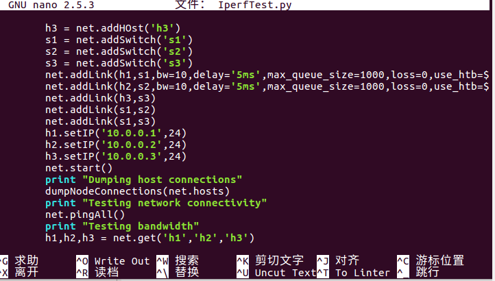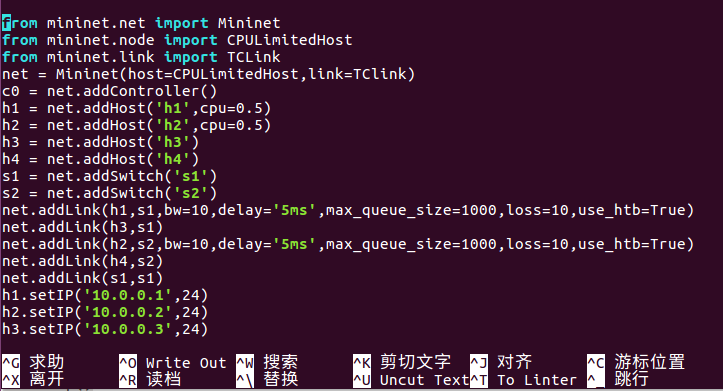 $ nano mytopo2.py // 复制 Python 代码到 py 文件中
