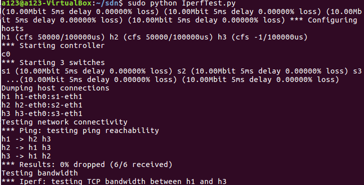 修改之前的 Python 程序,使之可用 iPerf 测试网络拓扑中的指定主机之间的带宽。