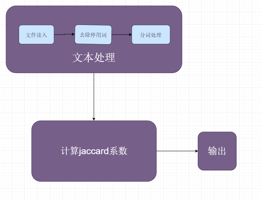 - (2)将得到的列表,运用jaccard系数的计算方法得到两个文本的相似度。