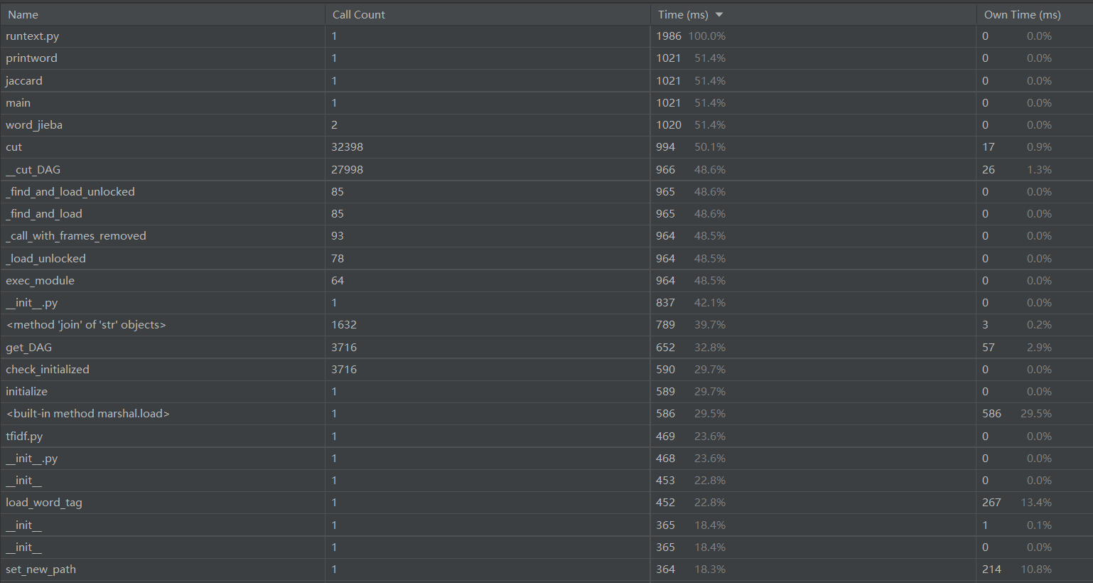 性能分析使用的是python自带的profile,得到下图