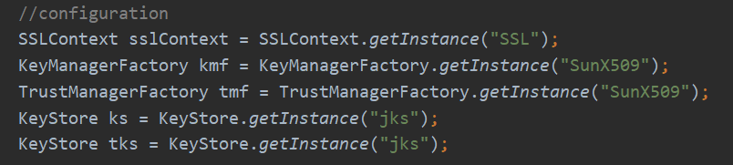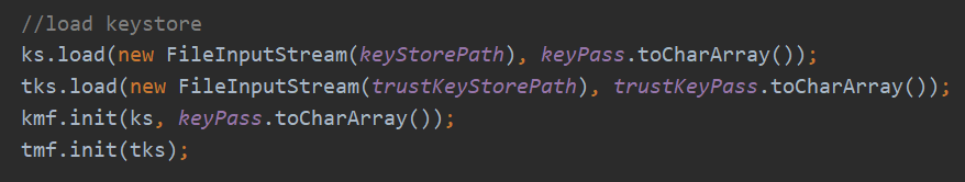 然后代码中很奇怪的一点是KeyStore和TrustKeyStore的load方法里已经传入过相应的密码(storepass)
