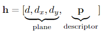 我们将瓦片假设定义为带有可学习特征的平面补丁。具体而言,它由描述具有视差和x和y方向(dx,dy)视差梯度的倾斜平面的几何部分和可学习部分p组成,我们称之为瓦片特征描述符。因此,假设被描述为对倾斜的3D平面进行编码的向量,