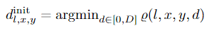 对于每个(x,y)位置和分辨率l,其中D是所考虑的最大视差。请注意,尽管初始化阶段会进行详尽的计算匹配所有差异-不需要存储整个成本量。在测试时,只需要提取最佳匹配的位置,这可以利用快速存储器非常有效地完成,例如GPU上的共享存储器和单个操作中的融合实现。因此,不需要存储和处理3D成本量。