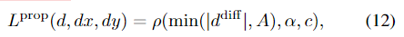 我们的网络是利用本节剩余部分中描述的损失,利用地面实况差异dgt进行端到端训练的。最终损失是所有尺度和像素上的损失之和: