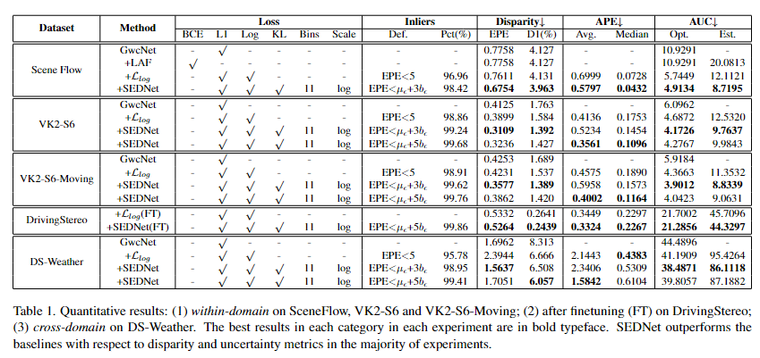 我们提出了广泛的实验验证SEDNet的性能在视差估计和不确定性预测的大数据集与地面真相。SEDNet优于具有相似甚至相同架构的基线,但没有提出的损失函数。我们的主要贡献是:
