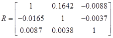 经过双目标定,系统采用的双目系统的R和T矩阵分别为: