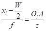 根据相似三角形∆olplOl和∆AOlP,并假设成像平面的宽为W,可得: