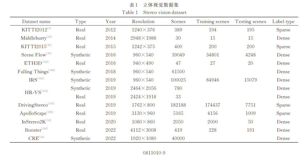 在接下来的第 2 节中,首先对传统立体匹配方法 进行了简要的回顾;第 3 节对近 8 年基于深度学习的立 体匹配方法进行了介绍;第 4 节介绍了立体匹配模型 的加速方法;第 5 节对常用的立体视觉数据集进行了 介绍;第 6 节介绍了双目视觉产品;最后是本文的总结 和展望。