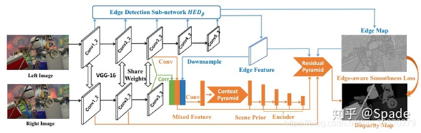 网络不仅能够预测视差图,还训练一个边缘子网络预测边缘图,将边缘信息整合到主网络中,指导视差学习。