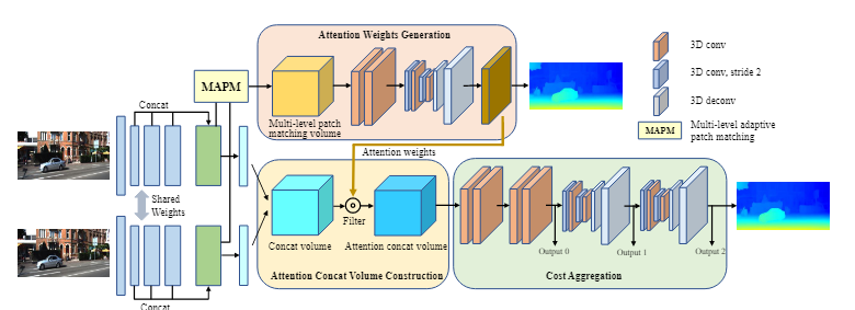 ACV利用了correlation volume生成注意力权重来滤波concatenation volume。为了得到可靠的correlation volume,使用多层适应patch matching来生成更精准的相似特征,该方法在不同特征层级使用不同大小的patch。
