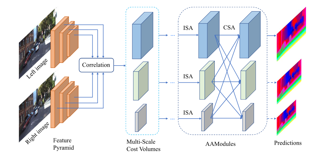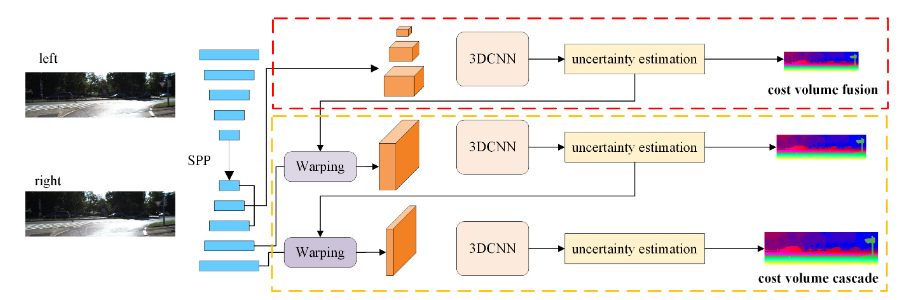 ○ 针对1)文章提出了融合cost volume的方式,企图通过不同scale的融合可以增强网络的感受野,在增加整体信息的同时可以兼顾细节信息;