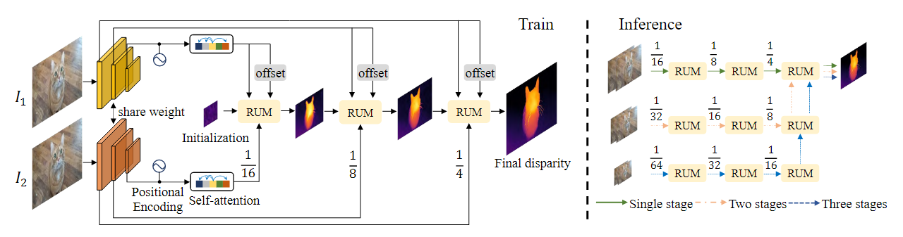 - 参考RAFT中迭代优化的策略,这里文章也采用这种coarse-to-fine的迭代优化形式。除此,还可以通过在infer阶段建立图像金字塔实现级联优化,从而得到更准确的视差估计;