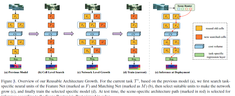 - 我们提出了一个可重用架构增长框架(RGA),由特定任务的神经单元搜索和架构增长组成。该框架可以在不发生灾难性遗忘的情况下持续学习估计新场景的视差,同时表现出良好的学习神经单元的可重用性。