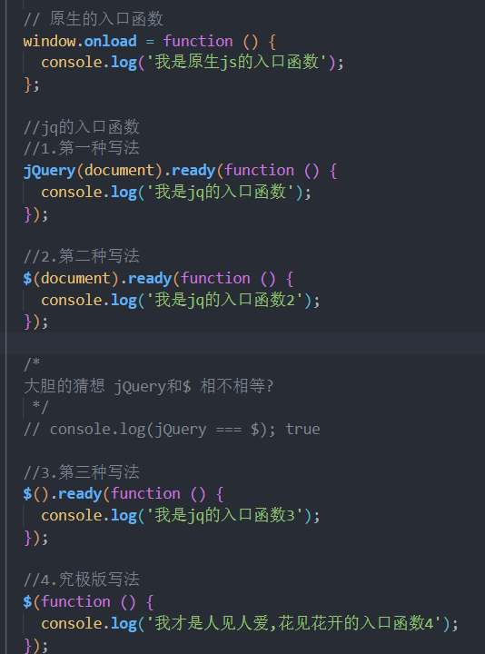 原生的入口函数: 在等页面的元素以及资源都请求成功之后,才会执行里面的js代码