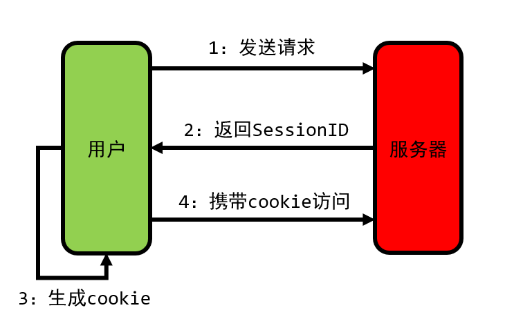 并且生成一个SessionID。 SessionID在响应浏览器的时候会被加载到cookie中,并保存到浏览器中。- 当用户再一次访问服务程序时,请求中会携带着