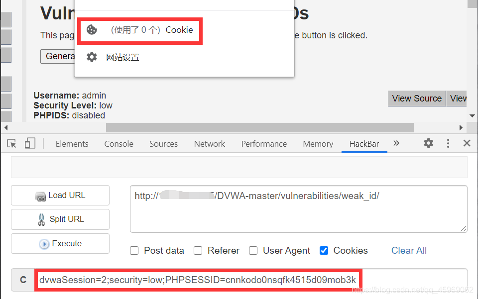 dvwaSession以及其他cookie内容,尝试删除cookie后登录。 -