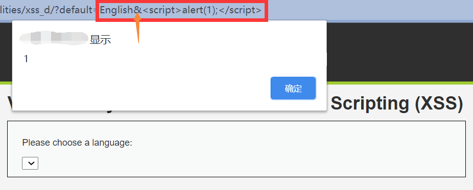 &或者#分隔参数,$_GET['default']指向分隔符之前的内容,参与后端判断语句。 - 根据前端代码可知,分隔符之后的内容也会载入到前端页面中,故可实现恶意代码的注入。