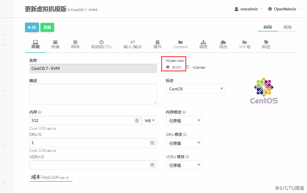 opennebula的硬件配置很灵活,硬件配置可以随意改,不受物理主机配置的限制。我这里没存用小点,做实验跑起来就行~