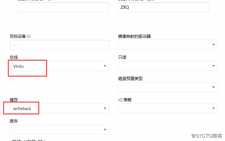 总线和缓存分别改为:Virtio/WriteBack。这将大幅度提升虚拟机的硬盘IO速度。其他设置默认~