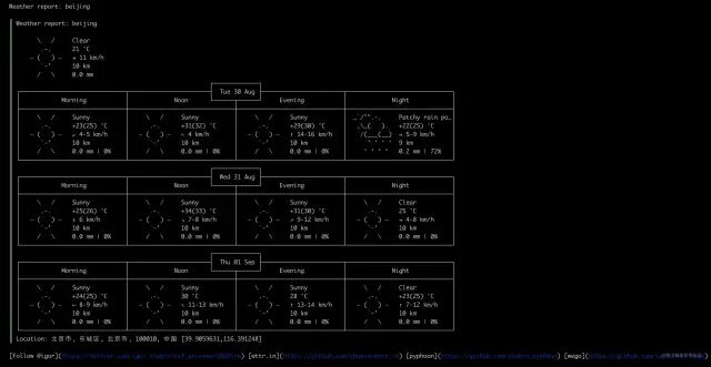 在开源社区,我们找到了 "github.com/JohannesKaufmann/html-to-markdown" 这个库提供 html 转换为 markdown 的能力,而 "github.com/MichaelMure/go-term-markdown" 又可以将 markdown 格式转为可在 terminal 打印的字符串,我们可以通过这两步来转换,实现整体的 GetWeather 函数: