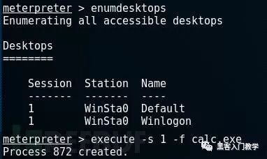 我们还可以使用“execute”命令在目标系统中执行应用程序。这个命令的使用方法如下: