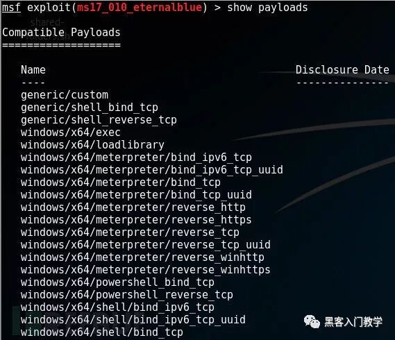 当我们在Metasploit中执行“show payloads”命令之后,它会给我们显示一个可使用的Payload列表: