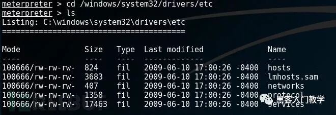 Meterpreter支持非常多的文件系统命令(基本跟Linux系统命令类似),一些常用命令如下: