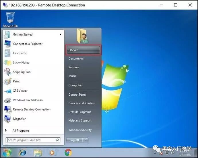 下图显示的是攻击者使用新创建的“Hacker”账号连接到远程桌面的画面: