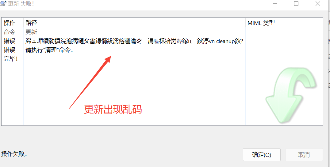 在svn出现和主分支冲突时,经常出现先一个感叹号,点击更新时出现乱码错误,导致无法使用更新和提交功能,原因是缺失了部分文件,导致无法使用其功能