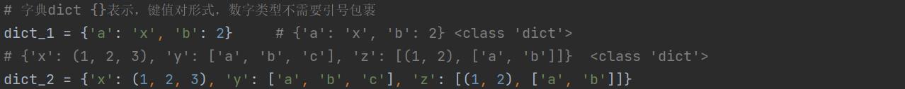 字典用{}标识,以键值对的形式表示 {'key' : 'value' }