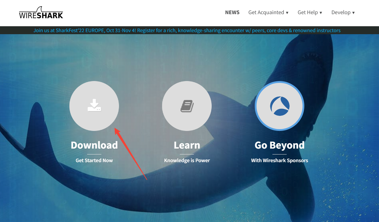 1. 打开网址 http://www.wireshark.org,进入 Wireshark 官网,点击download图标,如图所示。