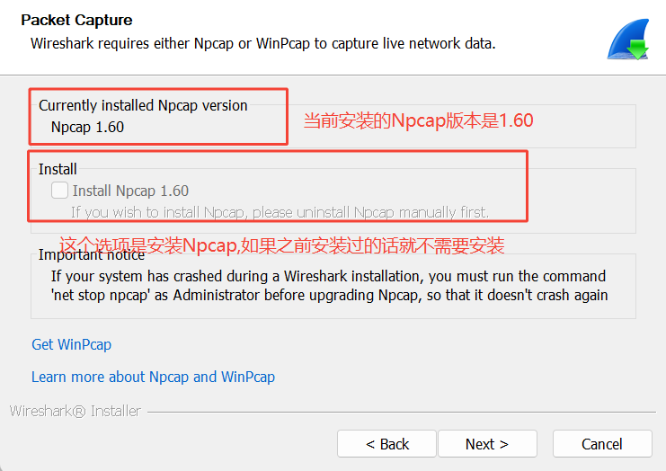 6. 这里是否安装Npcap,如果存在就不要安装,存在的话无法勾选,直接下一步