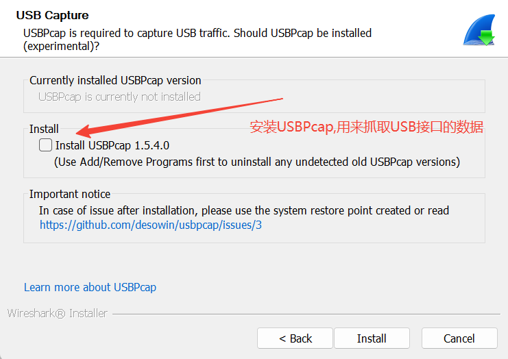 7. USBPcap,用来抓USB接口的数据包,看情况是否勾选,一般用不上,点击install