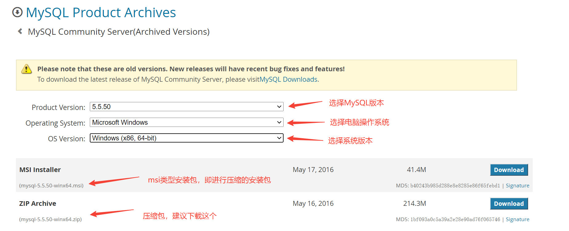 1. 地址:https://downloads.mysql.com/archives/community/