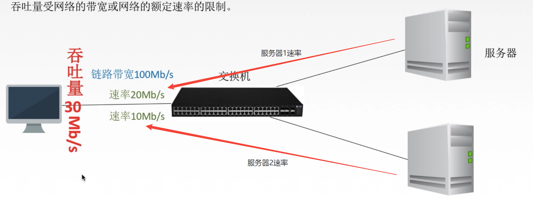 1. 定义:在单位时间内通过某个网络(或信道、接口)的数据量2. 单位:比特每秒,b/s,kb/s,Mb/s
