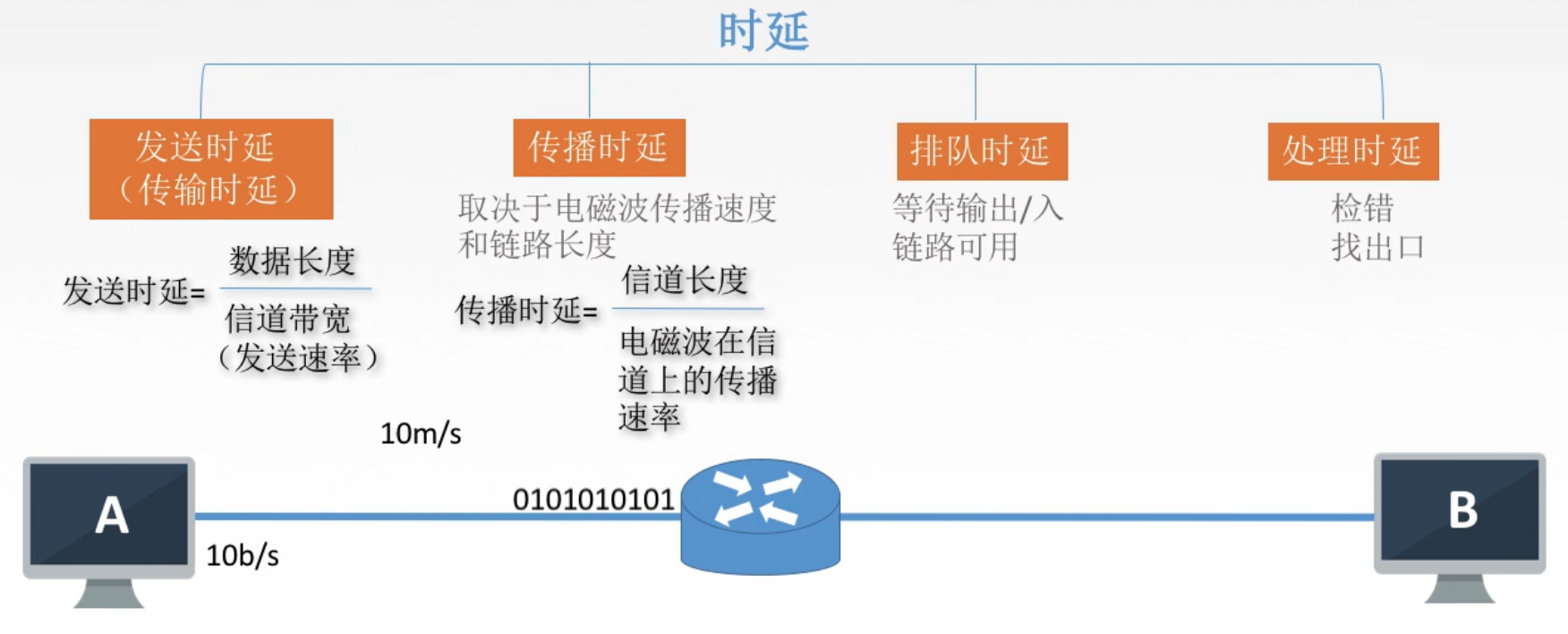 2. 计算:时延 = 发送时延 + 传输时延 + 排队时延 + 处理时延