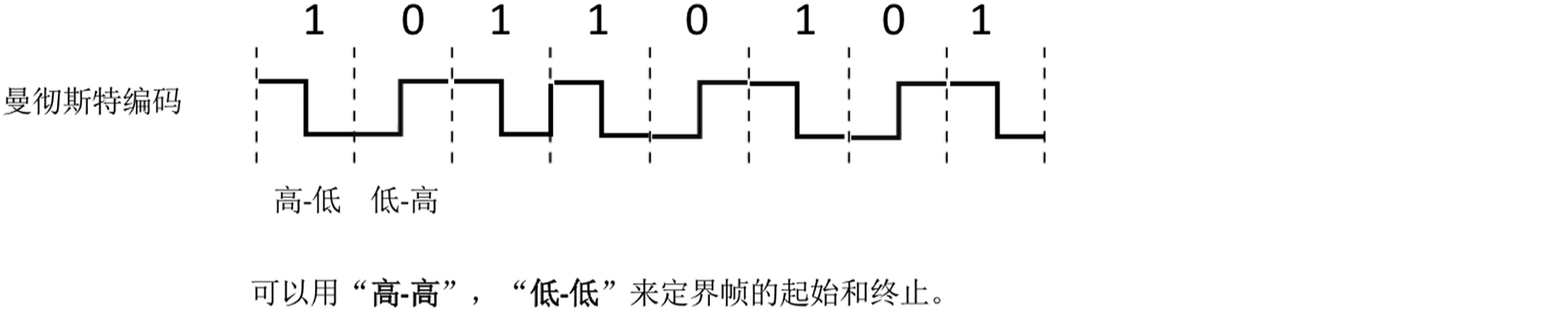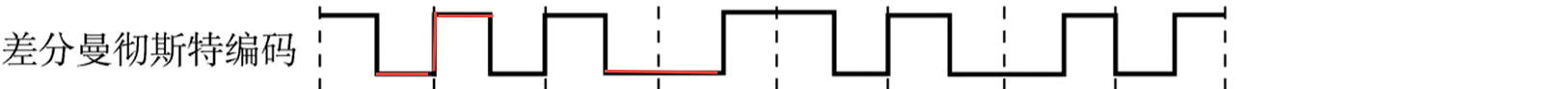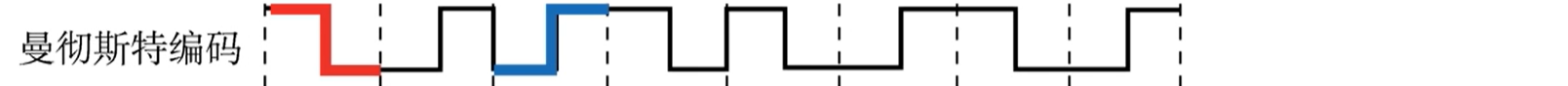 4. 曼彻斯特编码:将一个码元分成两个相等的间隔,高起低收表示1,低起高收表示0,亦可以反着自定义规定