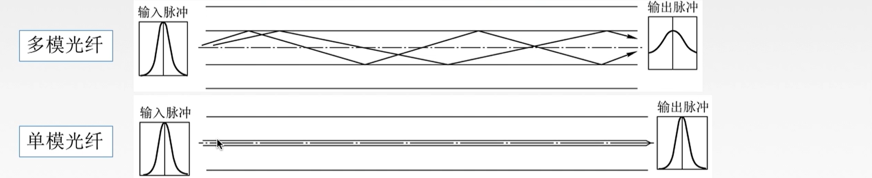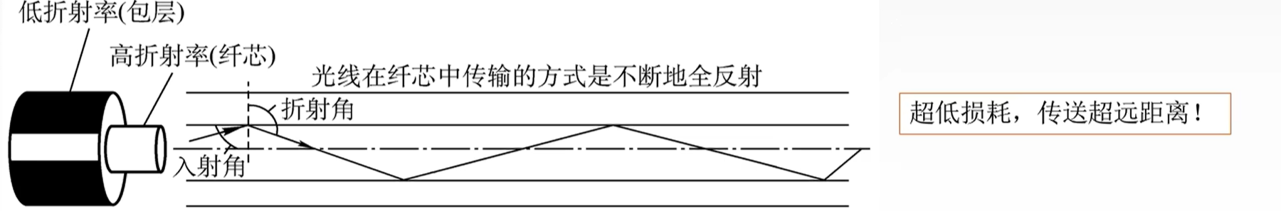 3. 光纤:利用光导纤维传递光脉冲来进行通信。有光脉冲表示1,无光脉冲表示0。
