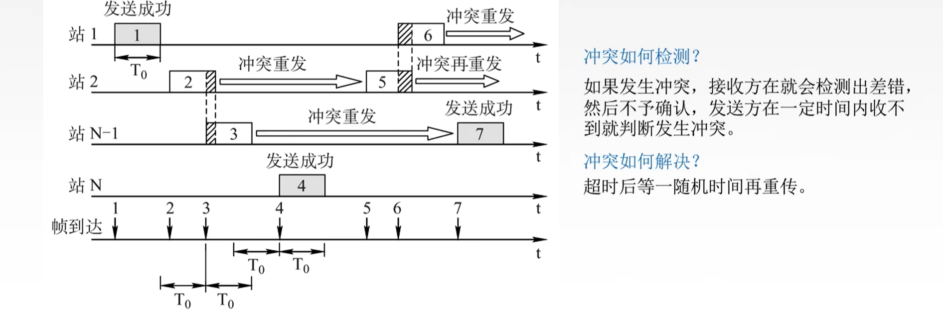 优点:采用随机的重发延迟时间可以减少冲突发生的可能性