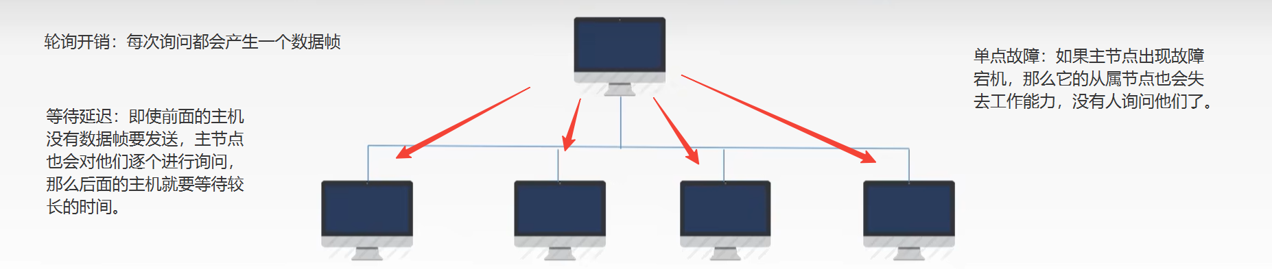 1. 轮询协议:主节点轮流“邀请”从属节点发送数据