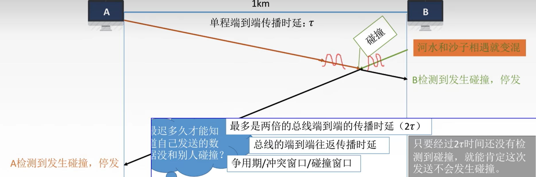 1. 传播时延对载波监听的影响: