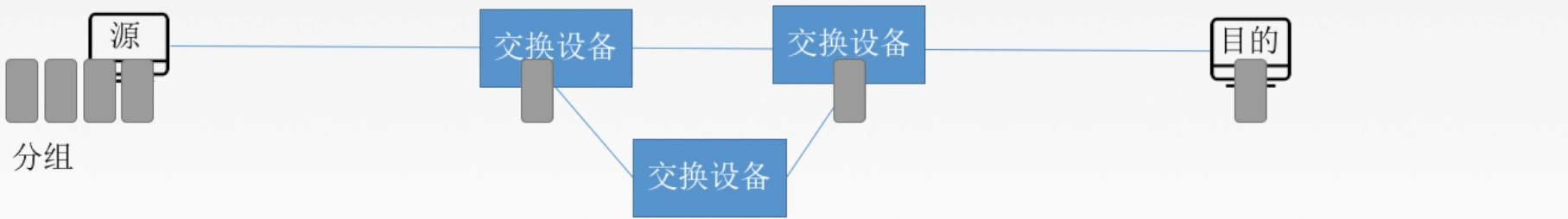 2. 存储转发,动态分配线路:交换设备可以进行存储数据,一旦链路为空闲状态则发送报文