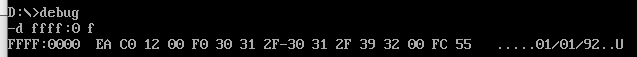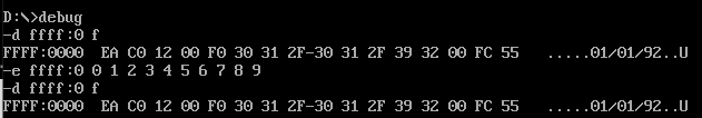 (1)在debug中,使用d命令查看生产日期